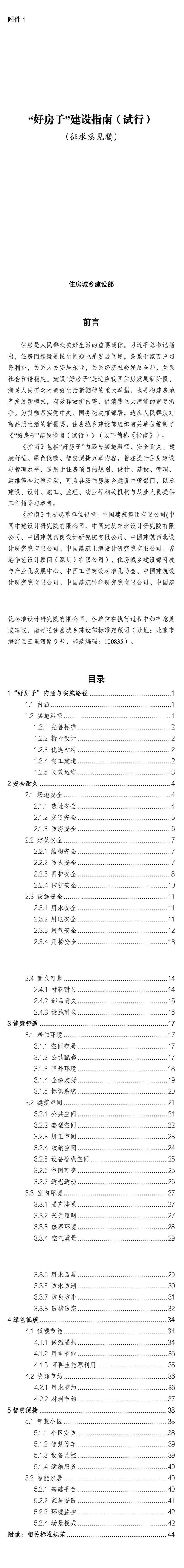 附件:1.《“好房子”建设指南(试行)(征求意见稿)》